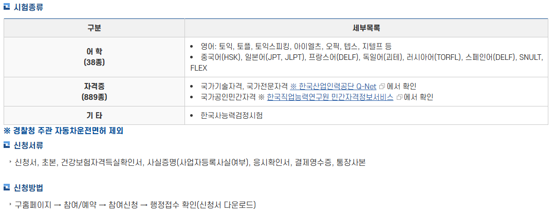 - 연 1회 신청으로 시험 유형별 선택 가능
