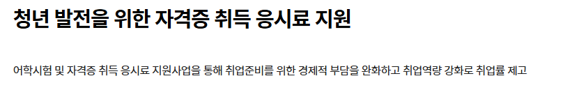 시험 종류도 토익뿐 아니라 JLPT, HSK 등 다양한 어학시험 포함하여 지원하고 있습니다. 지금 거주하고 있는 지자체 청년 정책 페이지나 청년센터 공고를 꼭 확인해보세요!