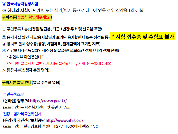 - 응시 후 영수증 제출 또는 바우처 사용 인증